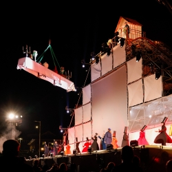 An estimated 9,000 people gathered at Stockton Riverside for the final act of the Ghost Train journey. The show featured a 12m-high reimagining of the Brusselton Incline. A seventeen strong cast told the human story of the Industrial Revolution and its enduring impact on the region accompanied by a five piece live band playing an original score whilst projection, fire, and pyrotechnics created a multilayered, spectacular and emotional conclusion to the event.